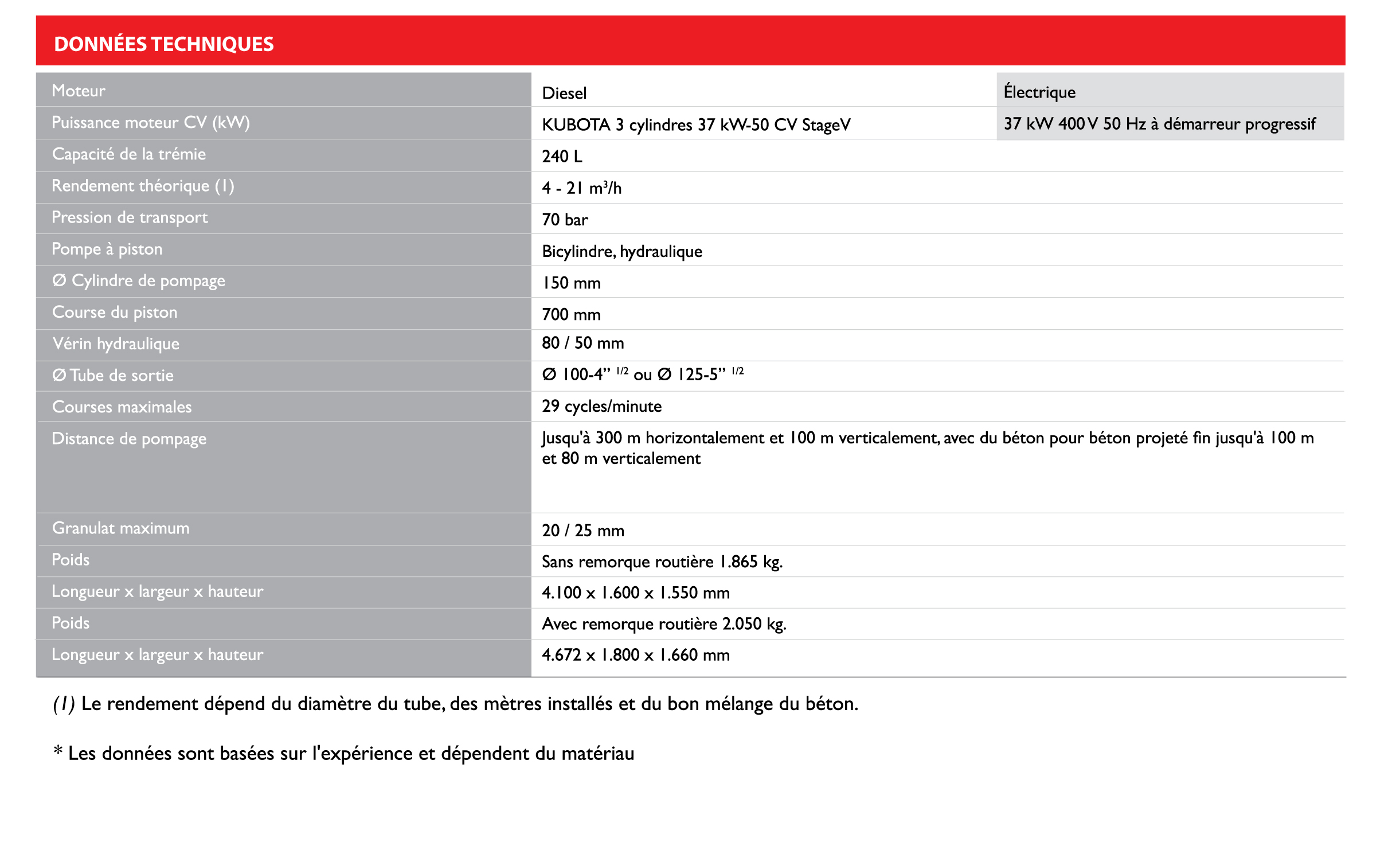 La pompe BH S. MAX 150/700, fabriquée par ARNABAT, a été particulièrement conçue pour le pompage de béton sur voie humide moyennant une granulométrie allant jusqu’à 20 mm.